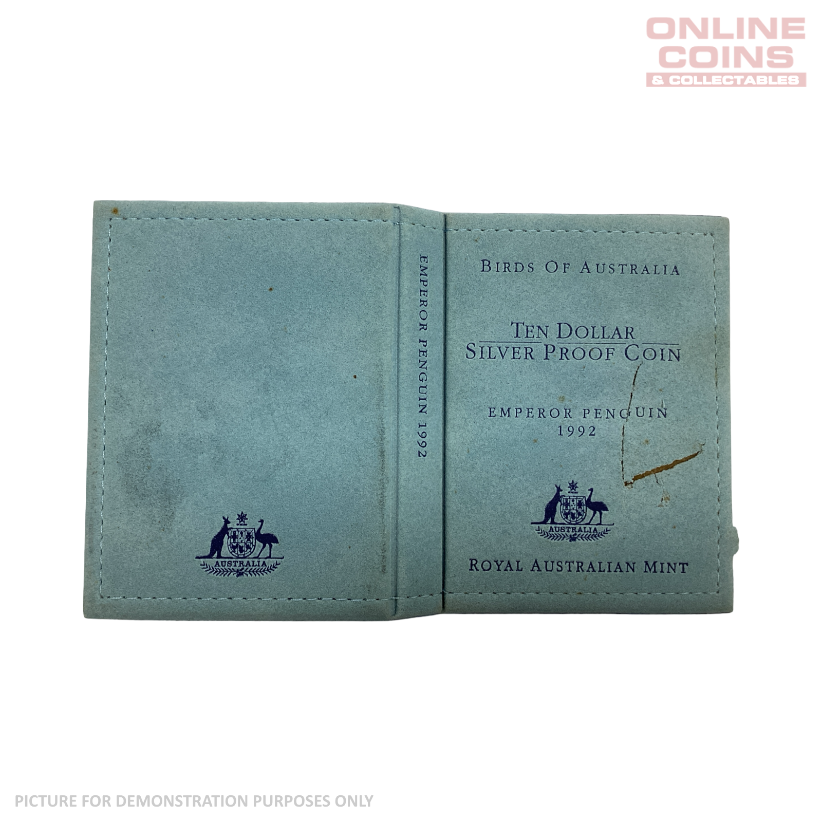 1992 92.5% Silver Proof $10 Emperor Penguins Birds of Australia In Damaged display