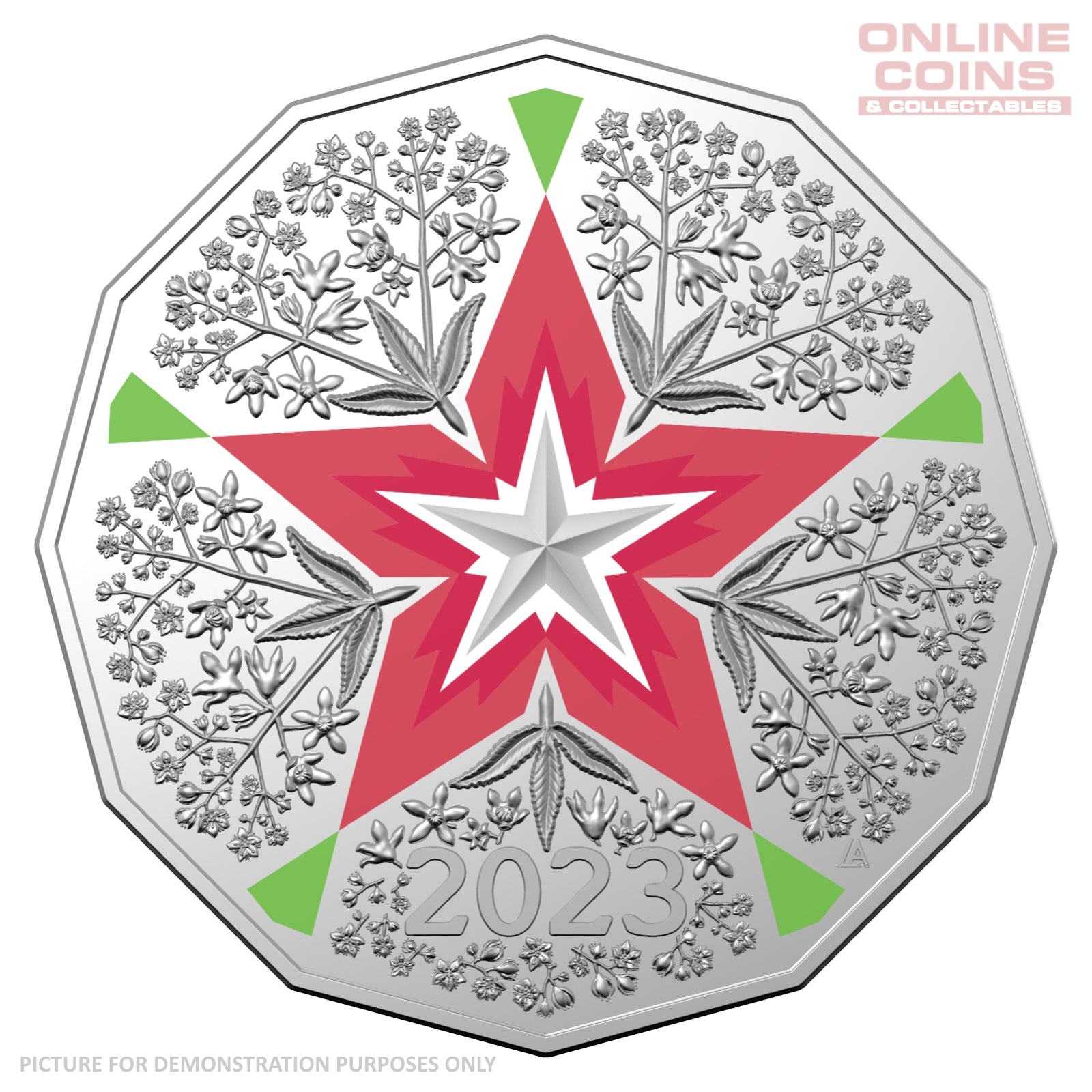 2023 50c CuNi Coloured Uncirculated Carded Coin - Christmas Decoration Festive Floral GREEN