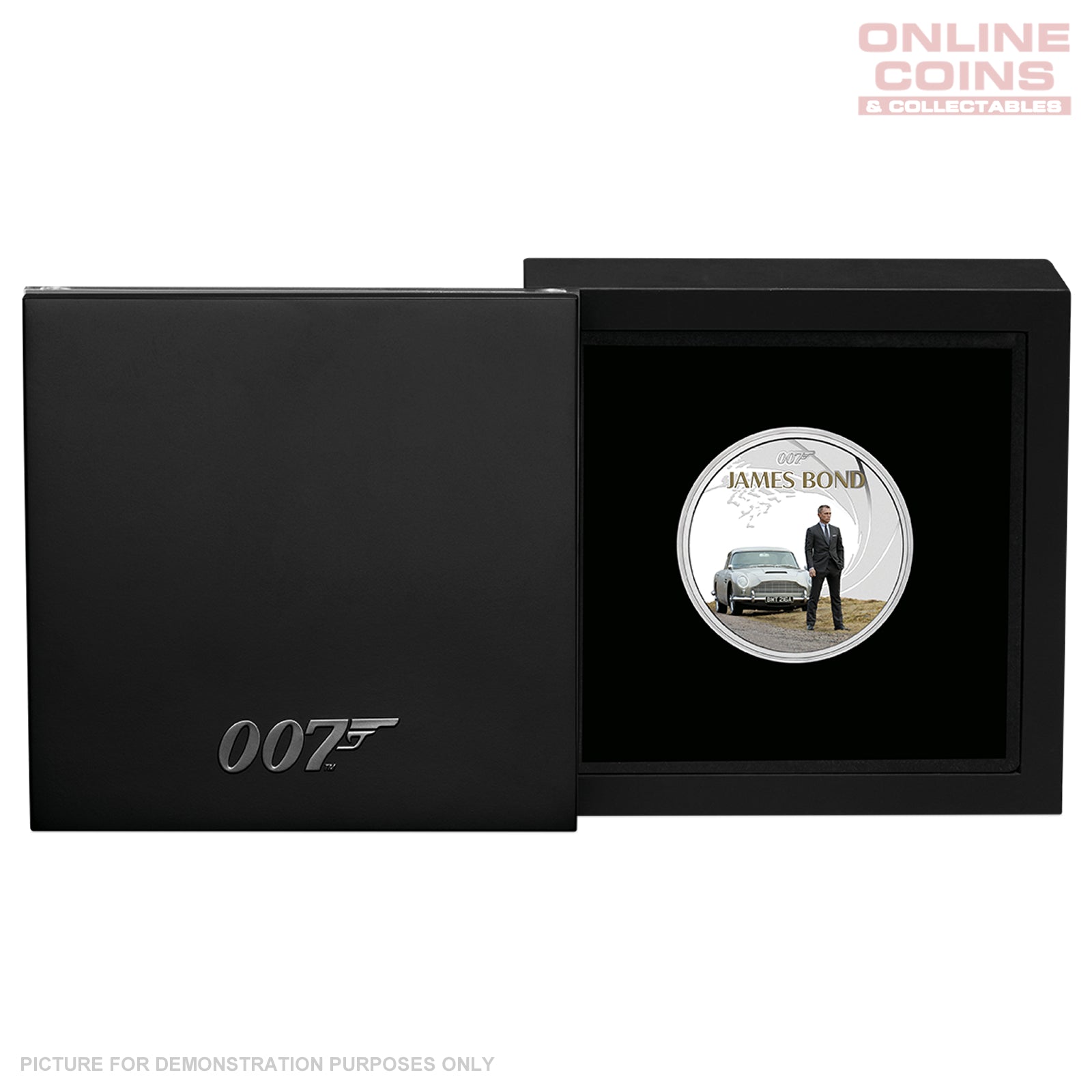 Housed in a presentation case and 007-themed shipper, the coin is accompanied by a numbered certificate of authenticity.