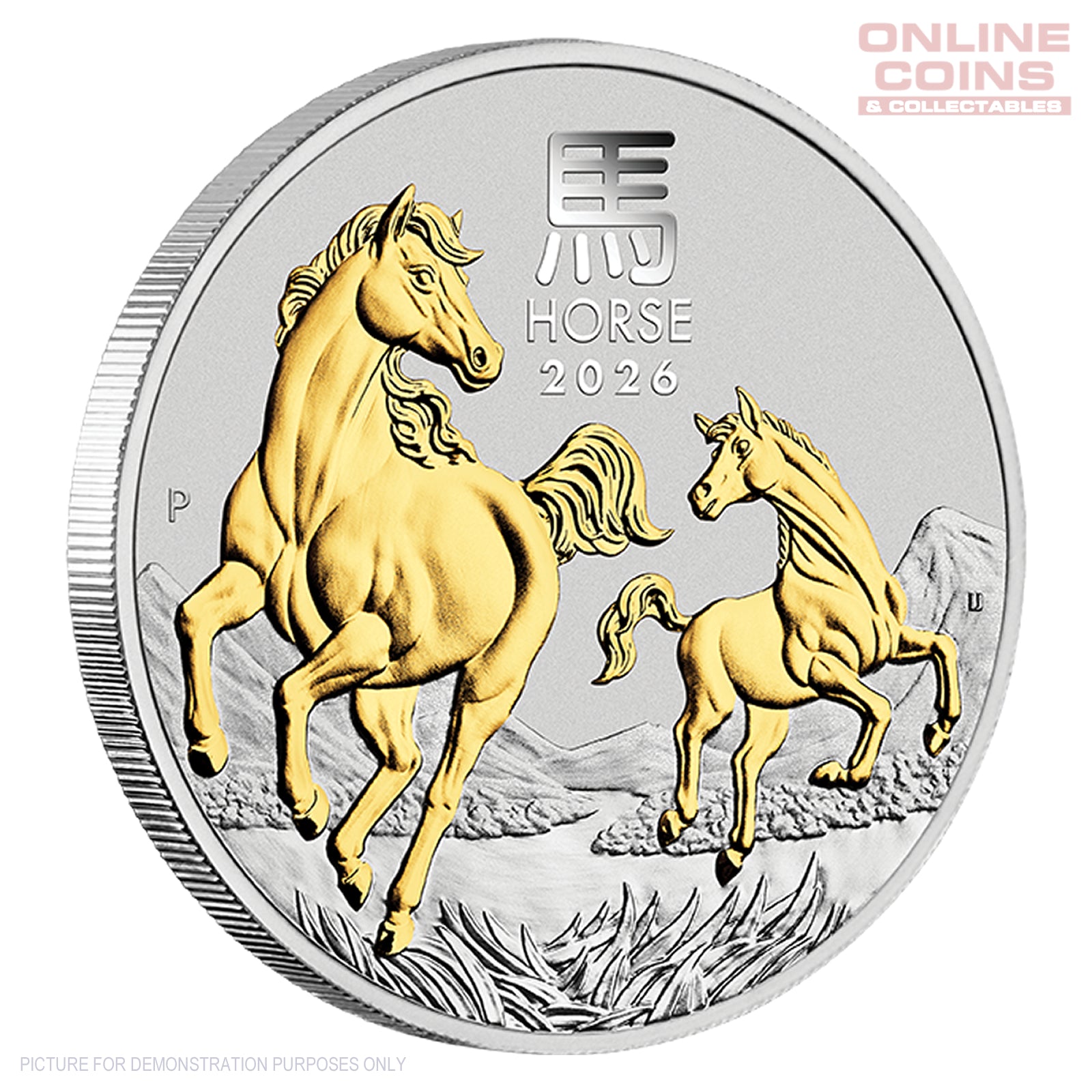 2026 Perth Mint 1oz Silver Gilded Coin - Year of the Horse