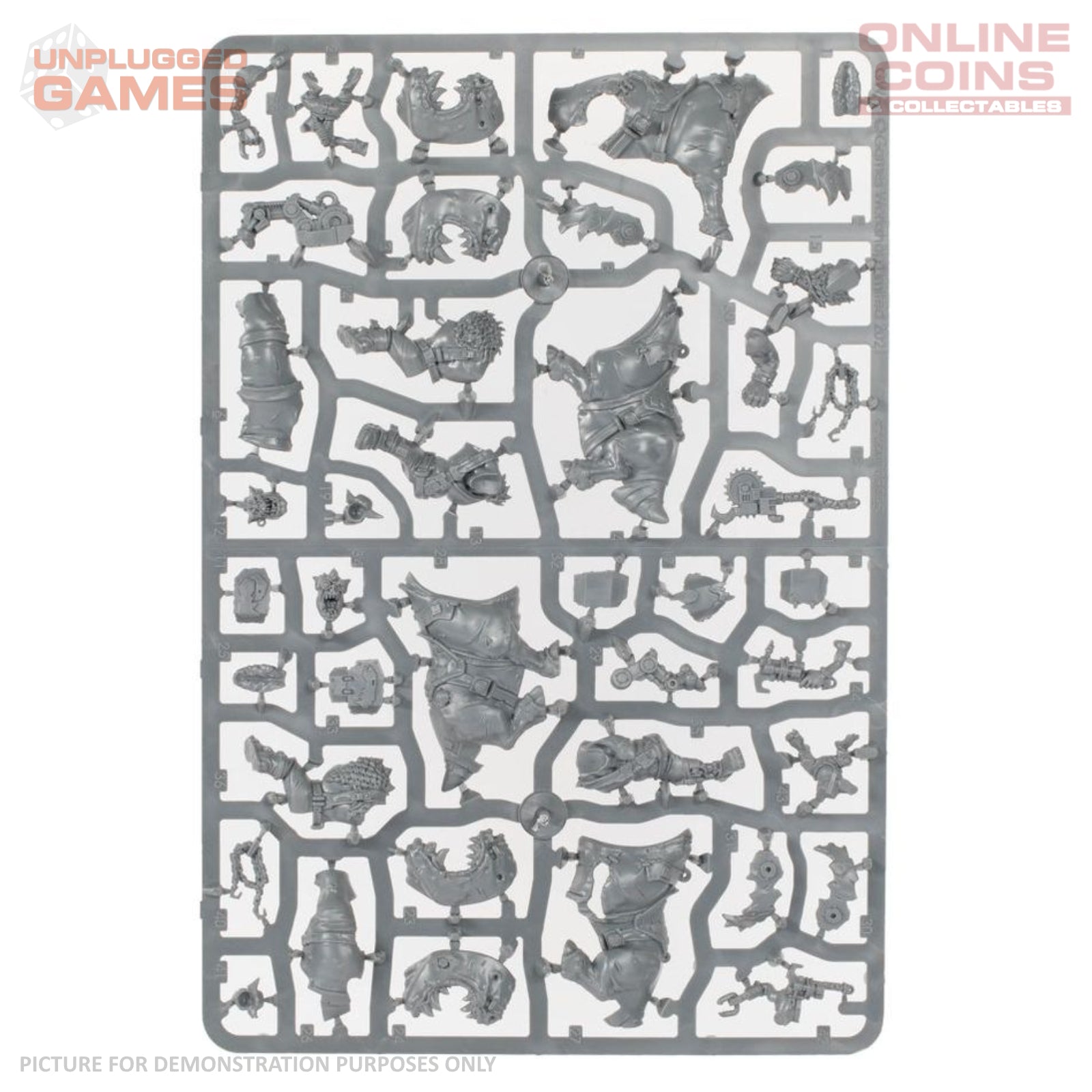 The kit is comprised of 104 plastic components which allows you to assemble one Nob on Smasha Squig, three Squighog Boyz, and one Bomb Squig, and is supplied with 1x 90mm Oval Base, 3x 75mm Round Base, and 1x 25mm Round Base. These miniatures are supplied unpainted and require assembly – we recommend using Citadel Plastic Glue and Citadel paints.