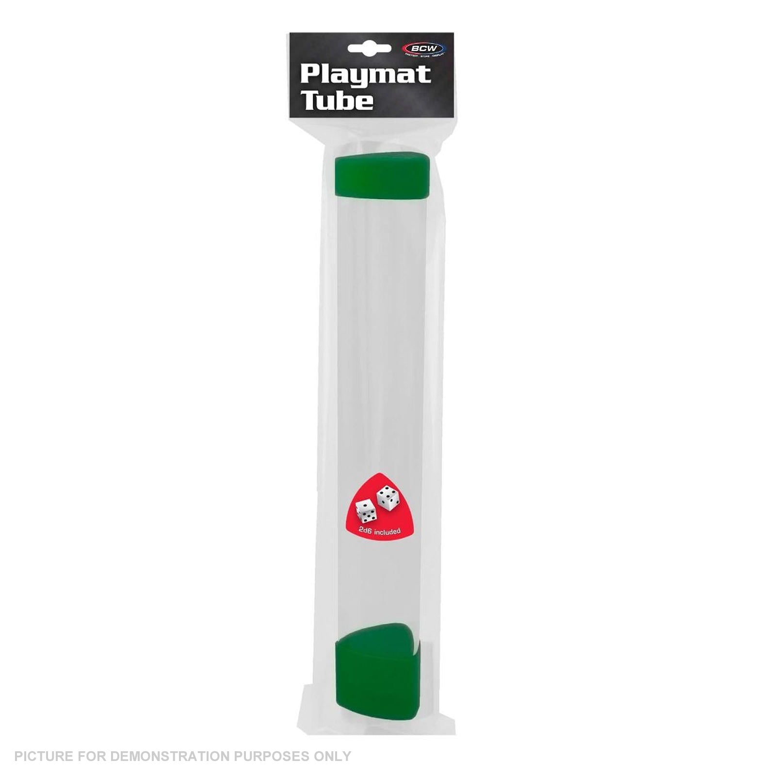 BCW Playmat Tubes are made of durable plastic and feature a shape that won't just roll off the table. These tubes also include an extra, tall cap. The cap not only protects the end of the tube and prevents breakage from falls, but allows plenty of space for dice storage.