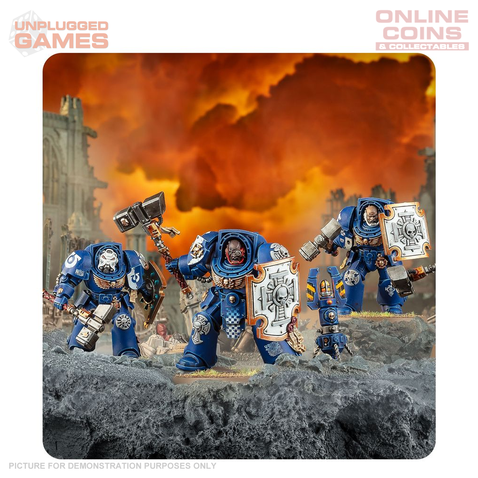 Terminator Assault Squads are armed with devastating close-combat weaponry perfect for ferocious assaults and savage boarding actions. They rush to engage the enemy's greatest warriors, shredding the foe with lightning claws or shattering their skulls with thunder hammers.