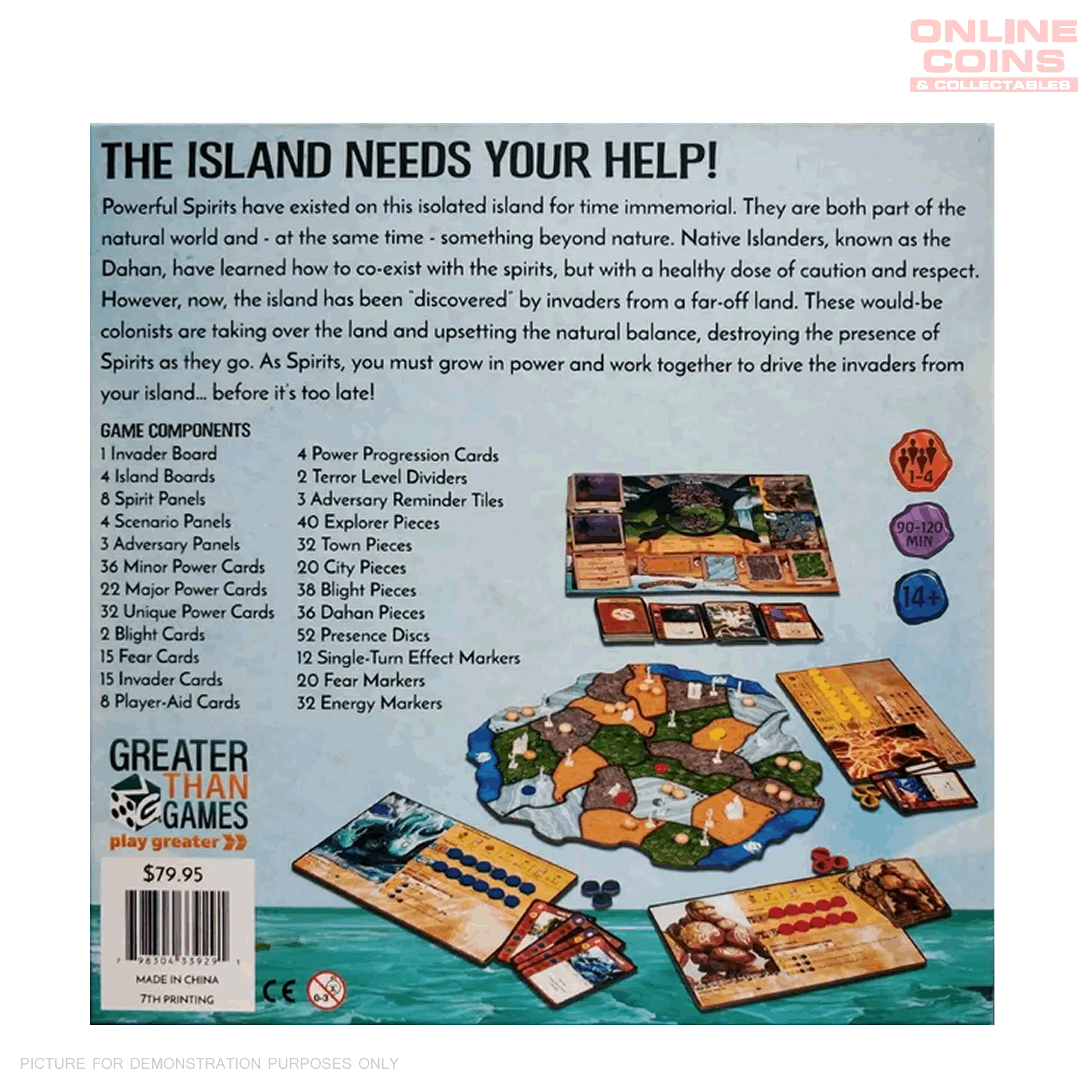 In the most distant reaches of the world, magic still exists, embodied by spirits of the land, of the sky, and of every natural thing. As the great powers of Europe stretch their colonial empires further and further, they will inevitably lay claim to a place where spirits still hold power - and when they do, the land itself will fight back alongside the islanders who live there. Spirit Island is a complex and thematic cooperative game about defending your island home from colonizing Invaders. Players are different spirits of the land, each with its own unique elemental powers. Every turn, players simultaneously choose which of their power cards to play, paying energy to do so. Using combinations of power cards that match a spirit's elemental affinities can grant free bonus effects. Faster powers take effect immediately, before the Invaders spread and ravage, but other magics are slower, requiring forethought and planning to use effectively. In the Spirit phase, spirits gain energy, and choose how / whether to Grow: to reclaim used power cards, to seek for new power, or to spread presence into new areas of the island.