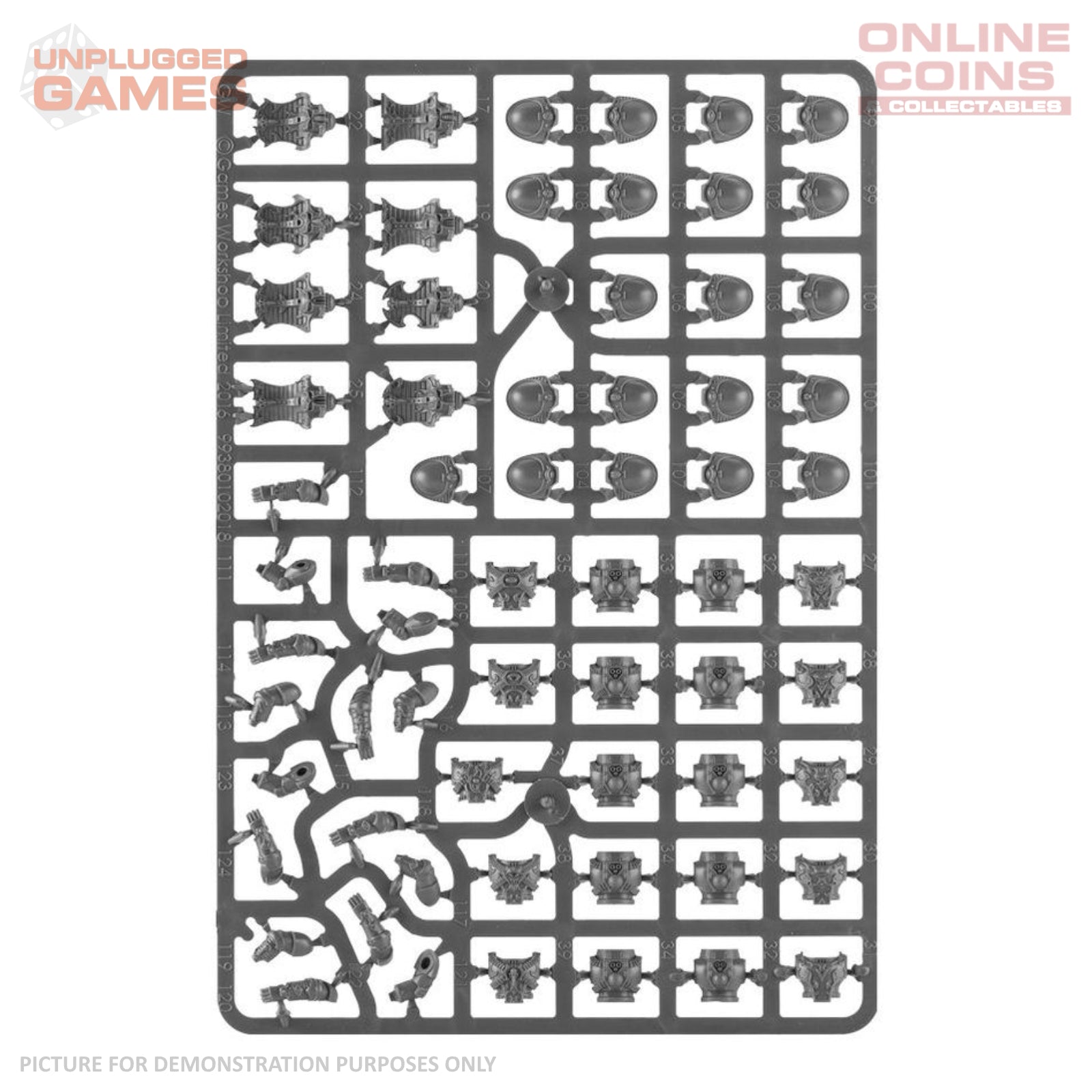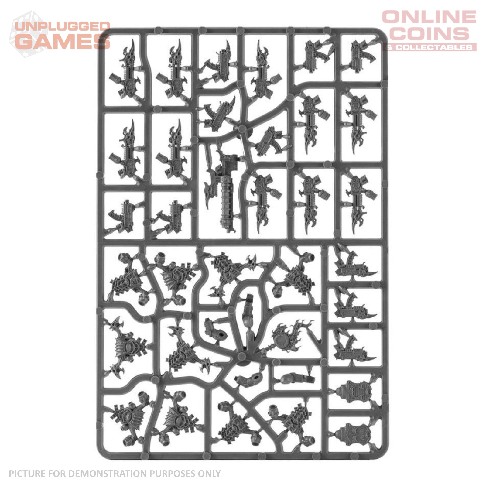 This multi-part plastic kit contains all the parts necessary to assemble 10 Rubric Marines, armed with either Inferno boltguns or warpflamers. One model can be armed with a soulreaper cannon, one can carry an Icon of Flame, and one can be assembled as an Aspiring Sorcerer, who is armed with a force stave and either an Inferno bolt pistol or warpflame pistol. Supplied with 10 Citadel 32mm Round bases.