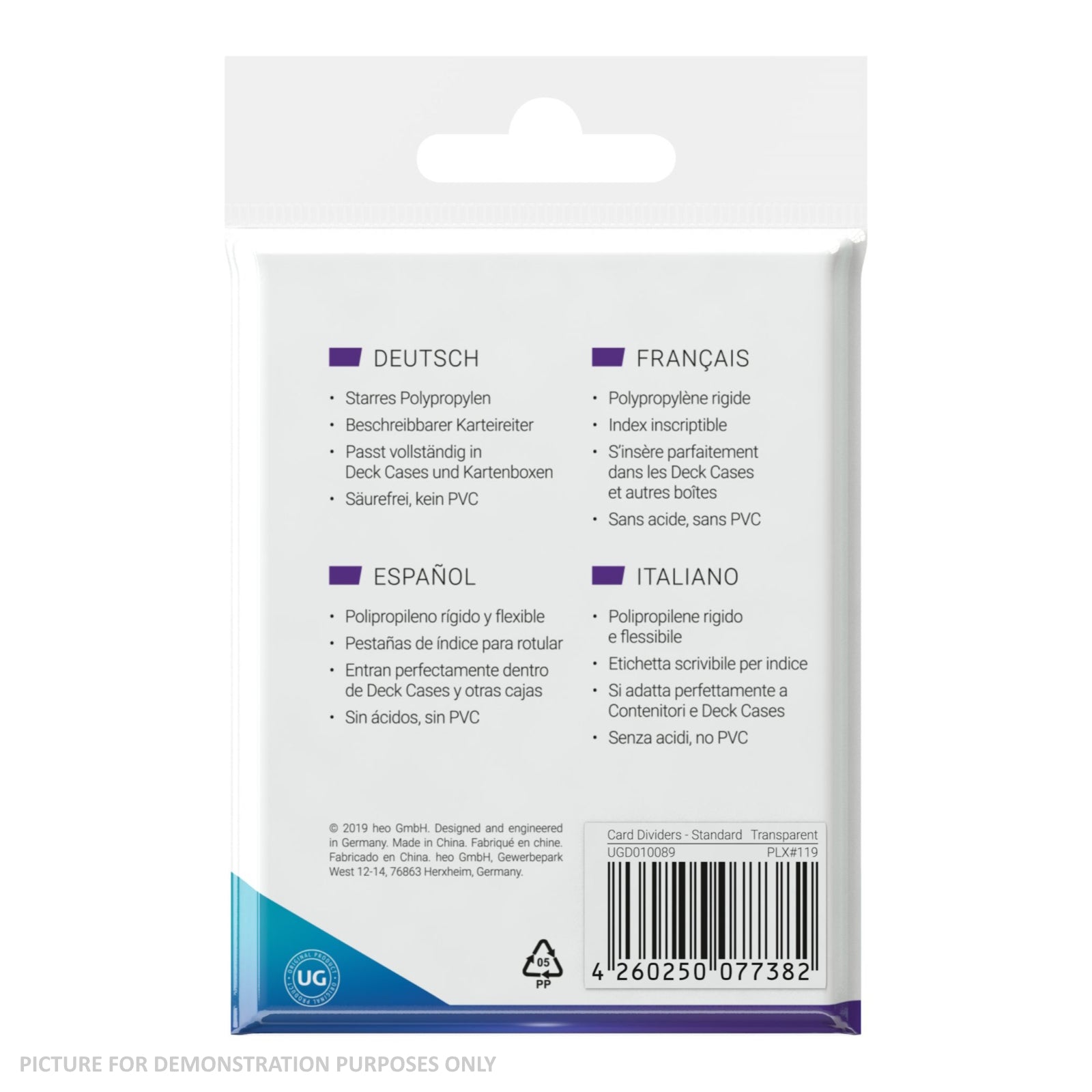 Rigid polypropylene card dividers with index tabs to organize your card collection. They fit fully in all standard-sized Ultimate Guard card cases and boxes.