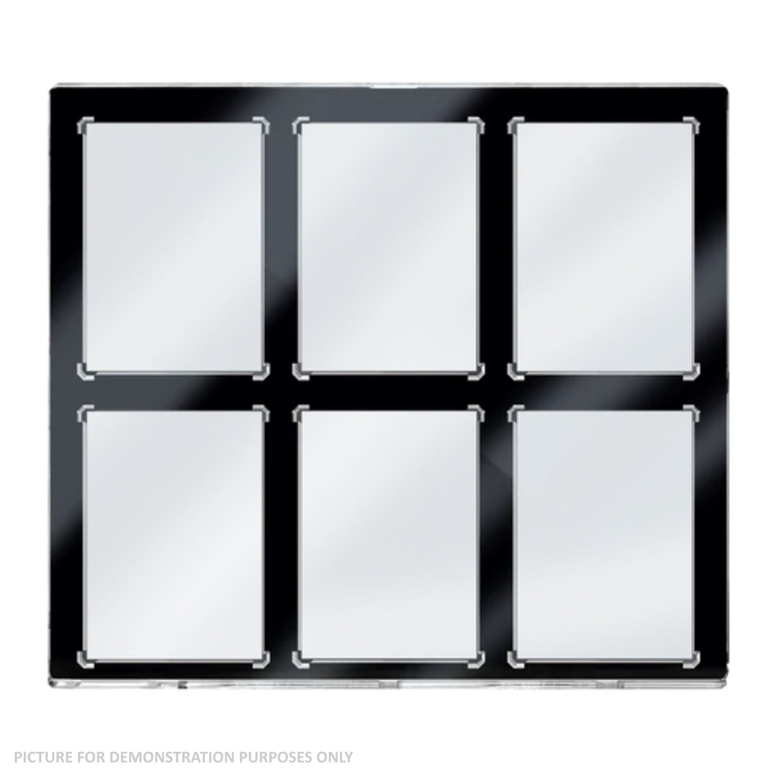 The 6-Card Black Border ONE-TOUCH display features a black border to perfectly frame your cards. Designed as the final destination for your collectible cards, our two-piece ONE-TOUCH holders are uniquely designed with a slide-in hinge and magnetic closure so you'll never have to use a screwdriver again. The holder provides UV-resistant, no-PVC, and acid-free protection to ensure your valuable hit retains its condition while under the display. Our ONE-TOUCH holders are ideal for presenting prized and super rare gaming cards as well. Has sawtooth hangers on the top and on the side of the display to allow displaying both vertical and horizontal format cards. This model can hold six standard cards (2-1/2" x 3-1/2") up to 35pt in thickness.