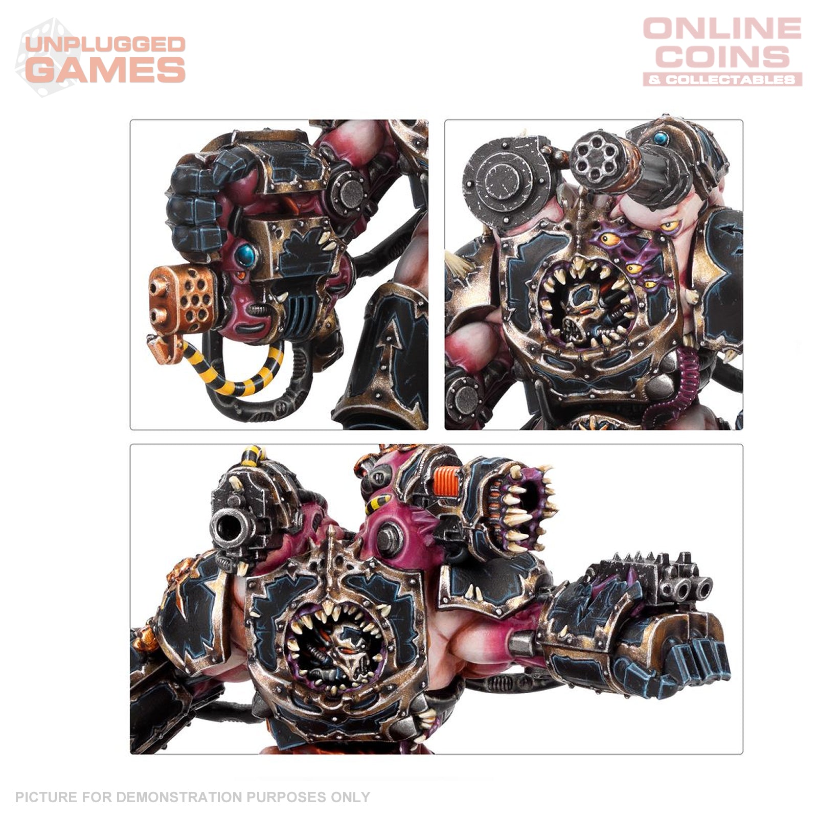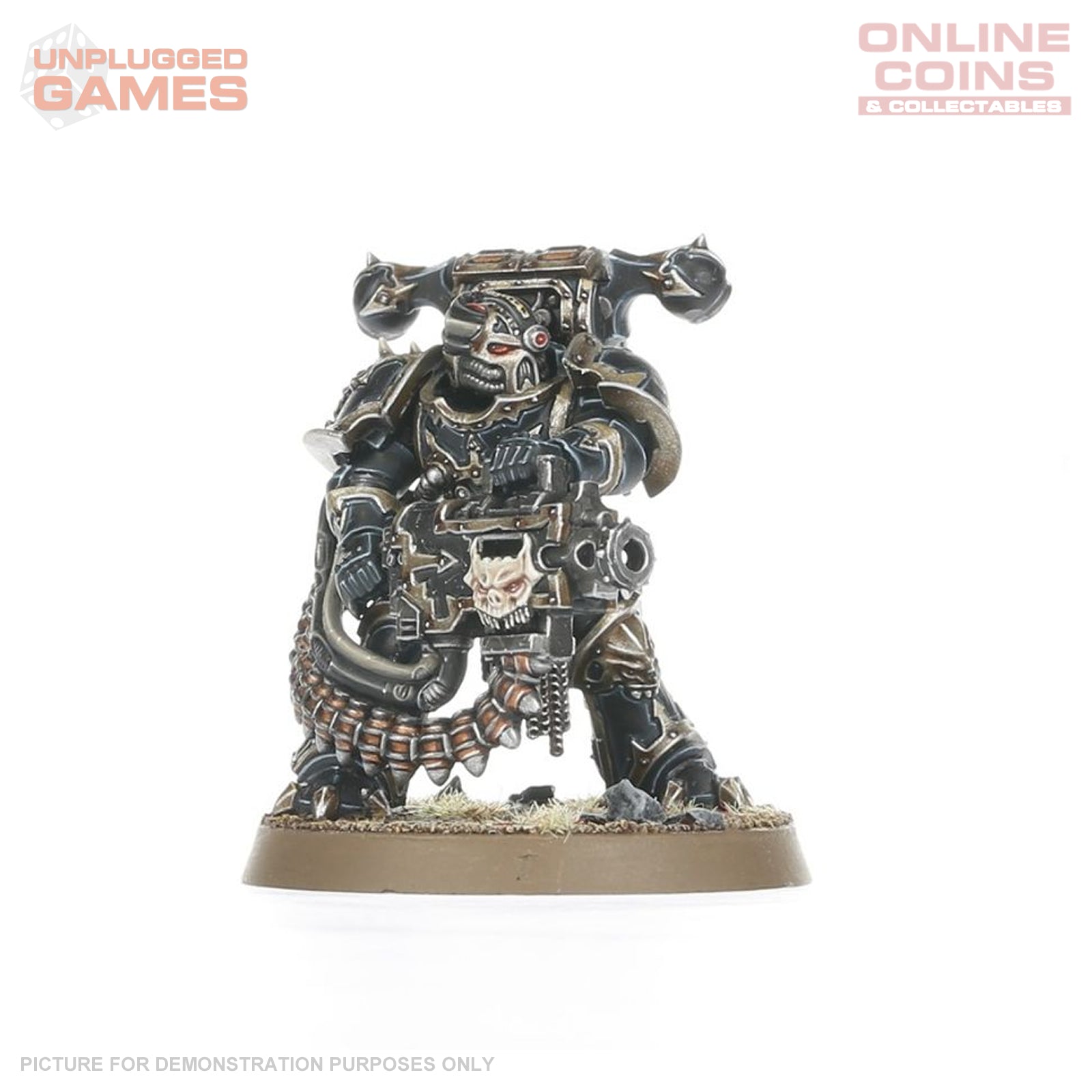 Chaos Space Marines are genetically augmented warriors who seek to conquer, slaughter, and despoil. These heretics go to war equipped with corrupted versions of the weapons and armour they once wielded as loyal troops of the Imperium. Now, they wage an ever-escalating campaign of vengeance, conquest, and apocalyptic violence.