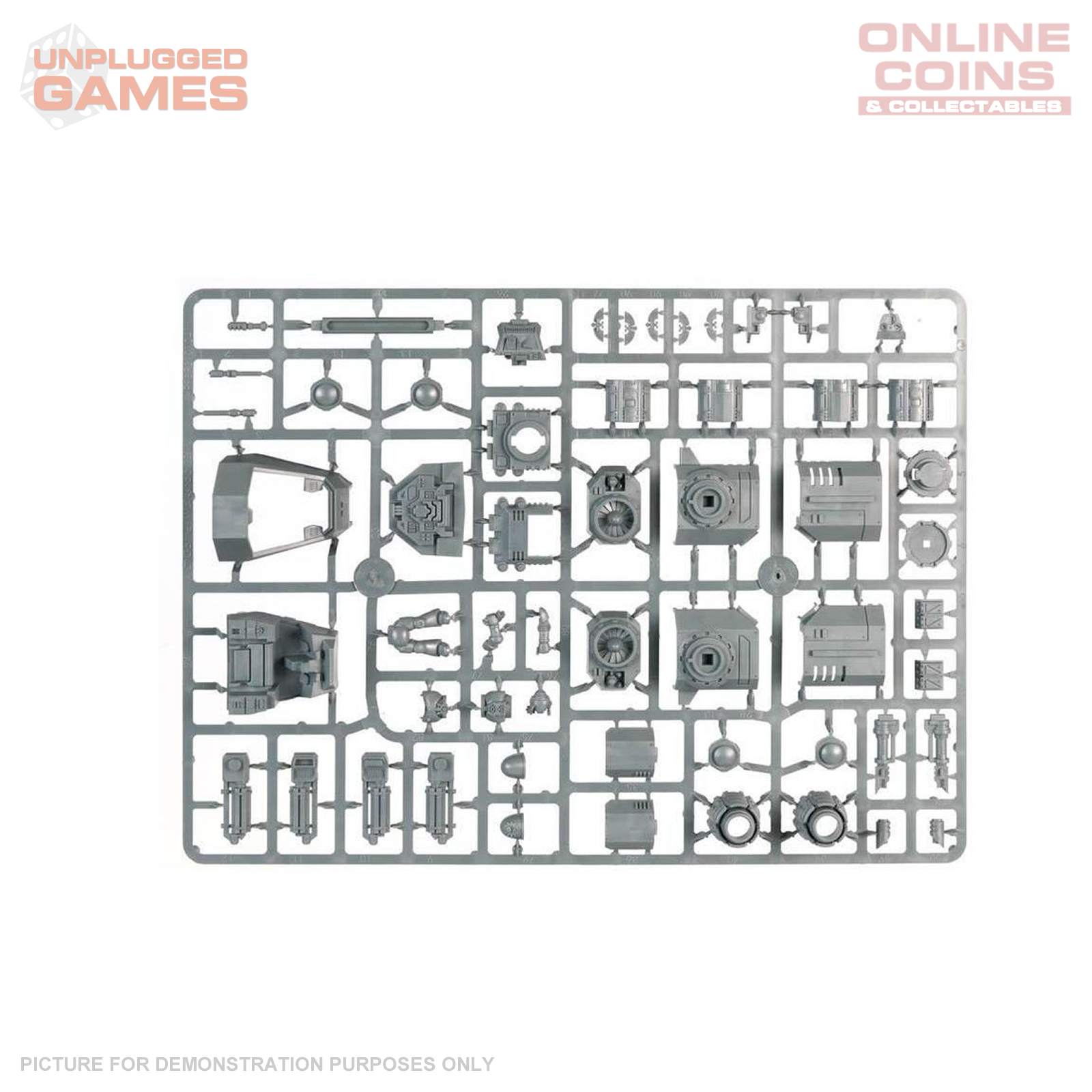 This multi-part plastic kit contains all the components necessary to assemble one Stormhawk Interceptor, ruler of the skies and destroyer of the Imperium’s flying enemies. Armed with a twin-linked assault cannon, a las-talon (which can be replaced with an icarus stormcannon,) twin-linked heavy bolters (which can be replaced with either a skyhammer missile launcher or typhoon missile launcher) and an infernum halo-launcher. Supplied with a transfer sheet, one Citadel 120mmx92mm Oval base and a flying stem.