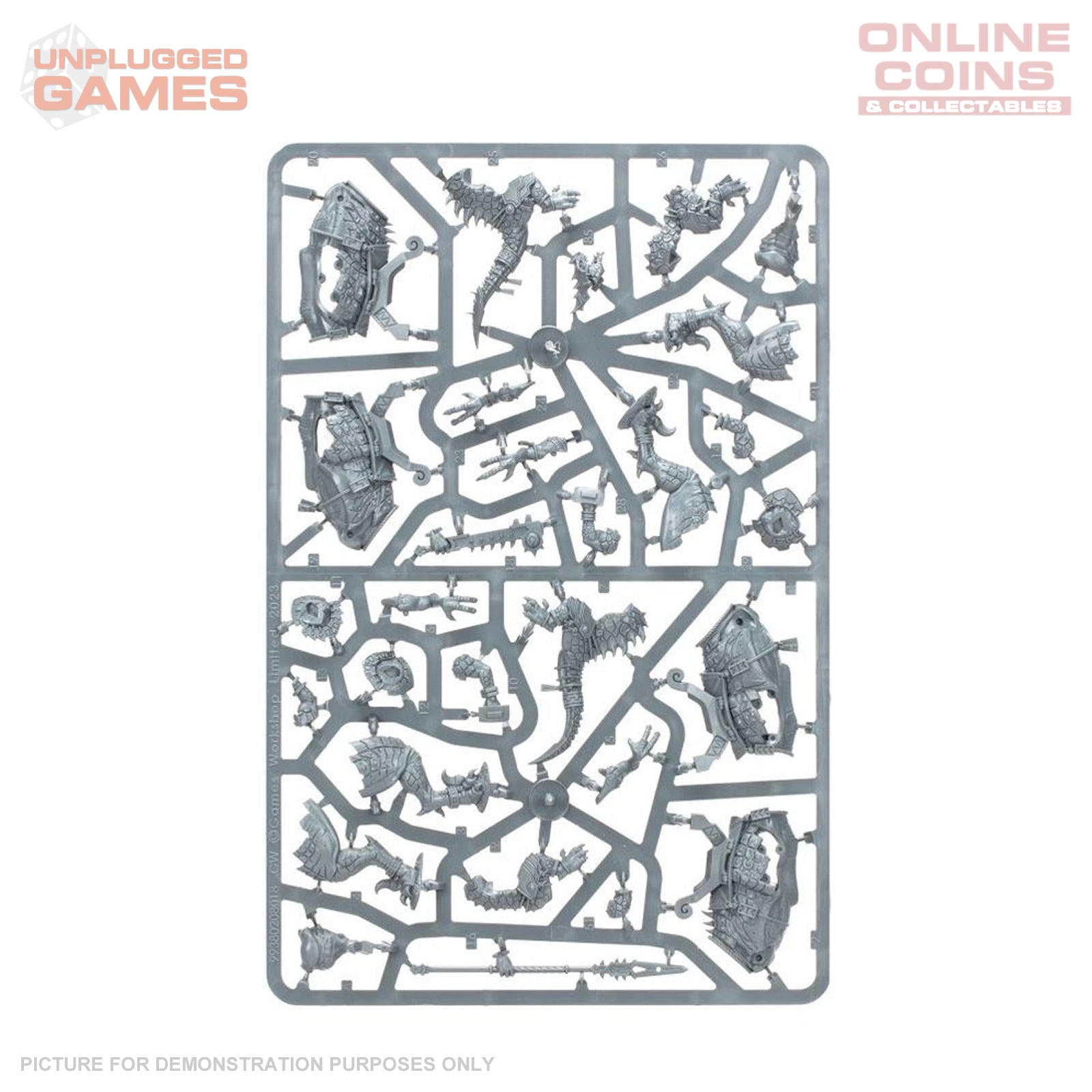 This kit comprises 95 plastic components, and comes with three Citadel 75x42mm Oval Bases. These miniatures are supplied unassembled and unpainted – we recommend using Citadel Plastic Glue and Citadel Colour paints.