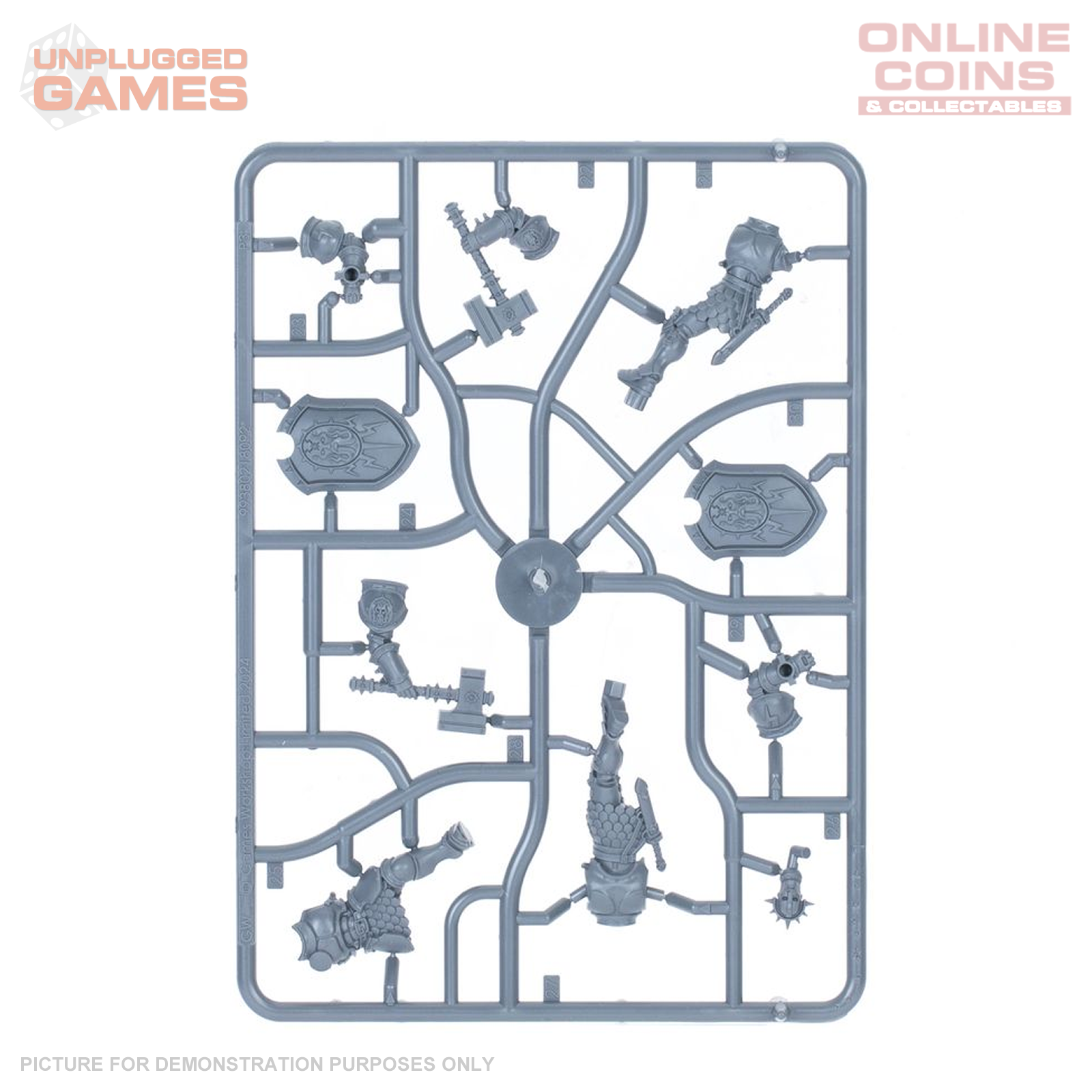 This kit comes supplied with 5x Citadel 40mm Round Hex Hole Bases, and 20x Citadel 25mm Round Hex Hole Bases. These push-fit miniatures can be assembled without glue, and are supplied unpainted – we recommend using Citadel Colour paints.