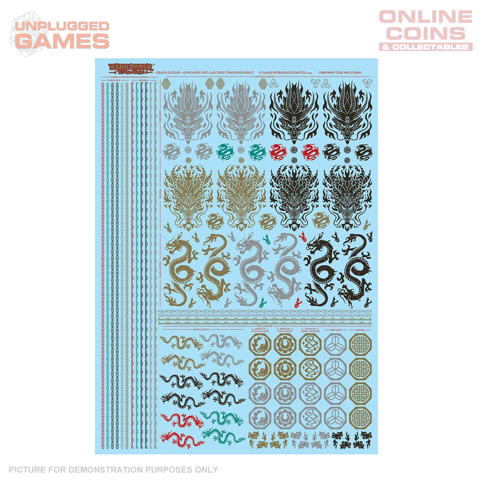 The kit comprises 128 plastic components, 1x Citadel 100mm Square Base, 1x Citadel 25mm Square Base, 1x Citadel Large Flying Stem, and 1x Sky Lantern Transfer Sheet containing 115 high-quality waterslide transfers to decorate your miniatures.