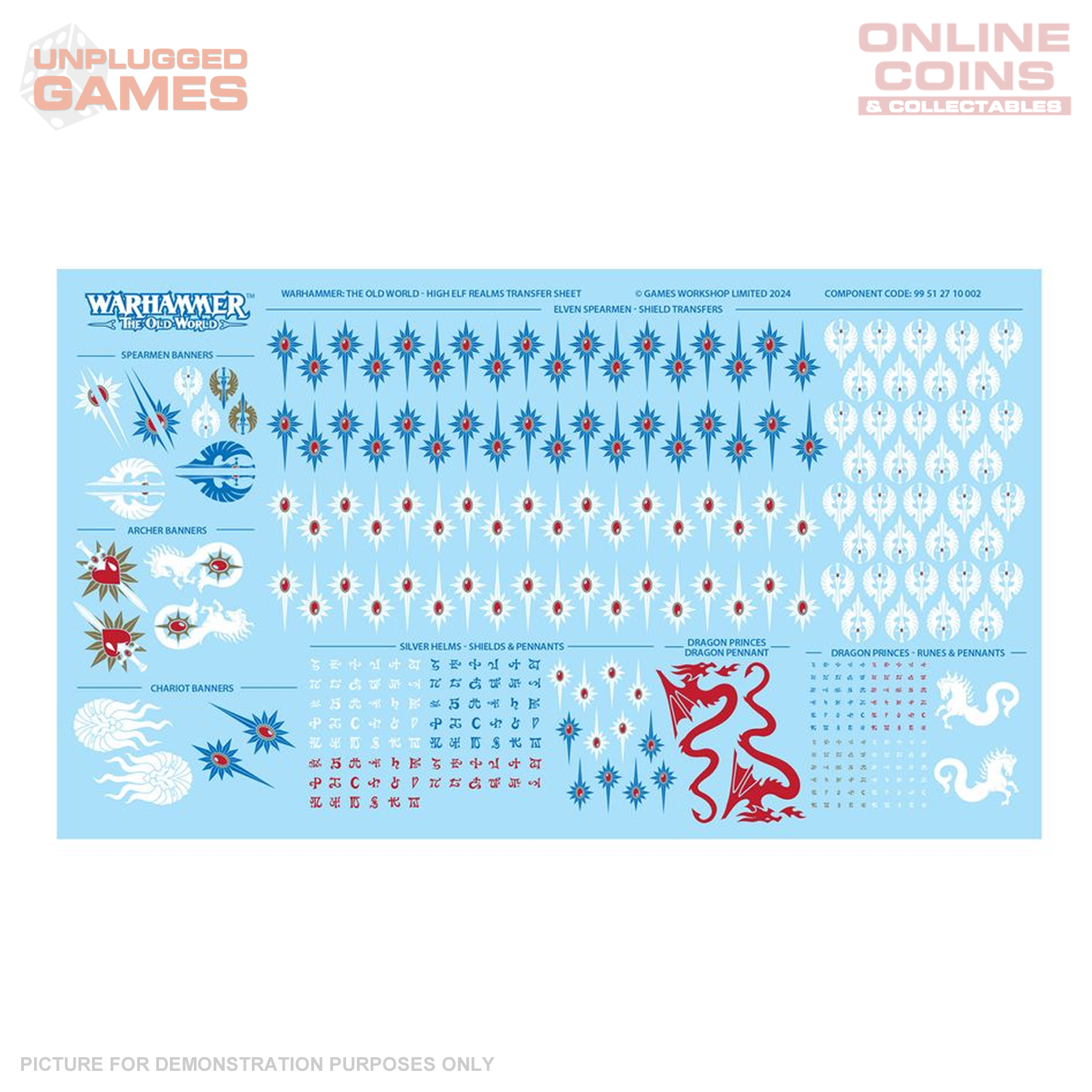This kit comprises 480 plastic components, 32x Citadel 25mm Square Bases, and 1x High Elf Realms Transfer sheet containing 356 high-quality waterslide transfers to decorate your miniatures.